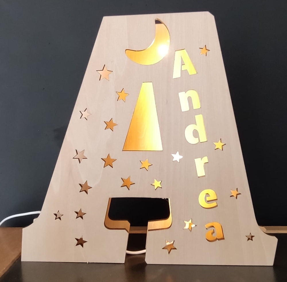 Lors de la commande, vous pouvez spécifier l'initiale du prénom et le prénom de votre enfant qui sera gravé sur la veilleuse, rendant chaque pièce unique..
